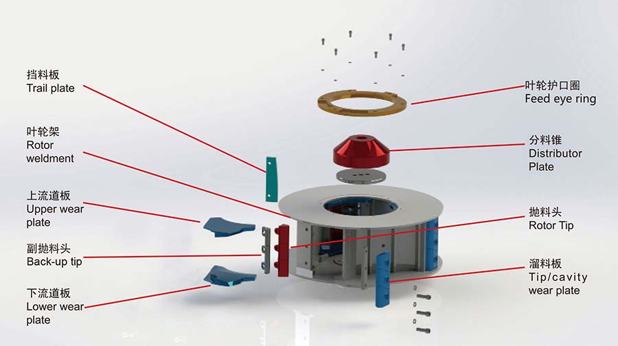 3、优化产品,优化的发射口结构及叶轮内部流畅的料流曲线设计,降低物料流动阻力,提高物料通过量和破碎比,效率更高,粒型更好,产量更大,而维护成本更低。