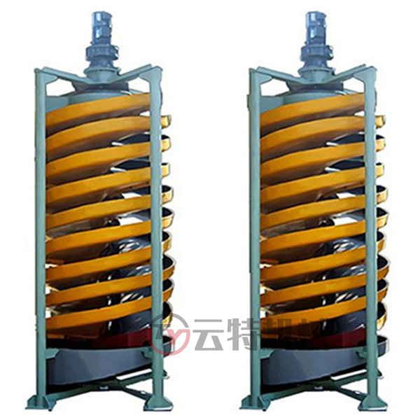 螺旋溜槽是北京矿院研制成功的,一款利用矿浆在螺旋回转运动中产生的惯性离心力实现轻重矿物分选的重选设备,玻璃钢螺旋溜槽用于选别粒度0.3至0.02毫米细粒的铁矿、锡矿、钨矿、金矿等。