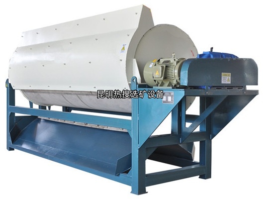分选矿物通过振动给料器均匀地送到分选筒的上部,旋转的筒体把非磁性物料抛离筒体,磁性物料受到强磁场力作用吸向筒体,用分矿板很方便、精确地将磁性、非磁性物料分离。如低品位磁铁矿、河砂、钢渣的分选,经本机初选抛去多余尾矿,使贫矿品位得到富集。干式磁选机要求被分选的矿物干燥,颗粒之间可以自由移动、成独立的自由状态。矿石由给矿圆筒预先排出强磁性矿物后,被均匀地排到给矿皮带上,并由皮带送到圆盘下面的磁场间隙中,弱磁性矿物受到磁力的作用,被吸到圆盘的尖齿上,并随圆盘旋转带至皮带的两侧,此处因磁场强度急剧下降,所以在重力与离心力的作用下,物料落入皮带两侧的磁性产品的槽子中(一般为精矿);非磁性产品由皮带运到尾矿端排入非磁性产品的槽子中(一般为尾矿)。